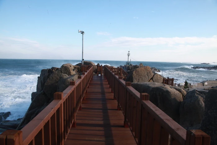 능파대능파대(凌波臺)는 육계도(陸繫島, land-tied island)를 이루는 암석해안 상에 발달한 대규모 타포니(tafoni)* 군락이다. ‘파도를 능가하는 돌섬’이라는 능파대의 이름은 파도가 몰아쳐 바위를 때리는 광경을 빗대어 붙여졌다. 육계도는 모래더미가 쌓여 육지와 연결된 섬을 말하며, 타포니는 암석의 측면(암벽)에 벌집처럼 집단적으로 파인 구멍들을 가리킨다. 능파대는 본래 문암해안 앞에 기반암(화강암)이 노출된 섬(암초)으로 존재하였으나 파랑의 작용이 줄어드는 섬의 배후에 문암천에서 공급된 모래가 쌓임으로서 육지와 연결되었다. 그러나 현재 능파대의 남측경계를 따라 문암 2리 항구가 들어섰고 섬과 문암해안을 연결하는 육계사주상에 취락이 들어섬으로써 육계도의 원형은 거의 관찰할 수 없다.